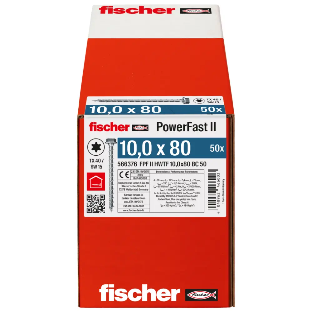 Fischer Spanplattenschraube 10,0x80 II HWTF BC, Sechskantkopf, Innenstern TX, Vollgewinde