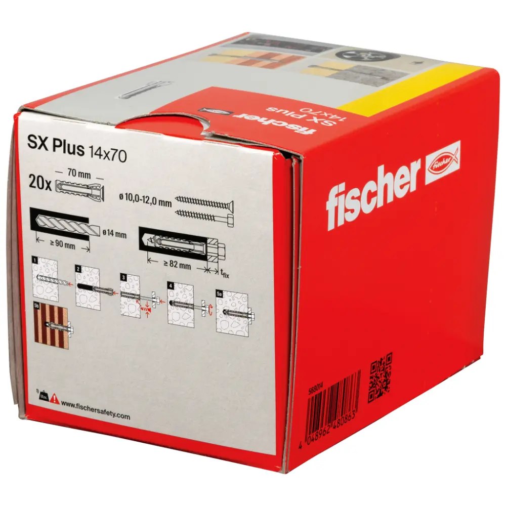 Der fischer Spreizdübel SX Plus ist durch seine 4-fach Spreizung der Spezialist für Vollbaustoffe wie Beton, Kalksandstein und Mauerwerk. Die speziellen Fixierflügel sorgen für eine Vorfixierung der Schraube, wodurch diese bei Überkopf Anwendungen nicht zusätzlich festgehalten werden muss. Diese Schraubenfixierung ermöglicht dem Anwender einen flexiblen und komfortablen Setzvorgang. Der flexible Dübelrand verhindert zudem ein Tieferrutschen des Dübels in das Bohrloch für eine sichere Montage. Das hochwertige Material aus Nylon garantiert dauerhaft sicheren Halt in einer Vielzahl von Voll- und Lochbaustoffen.