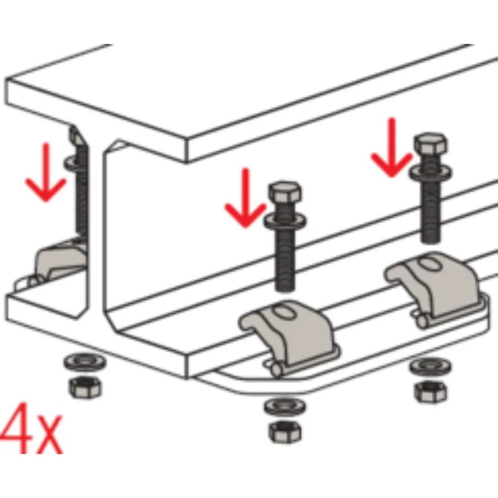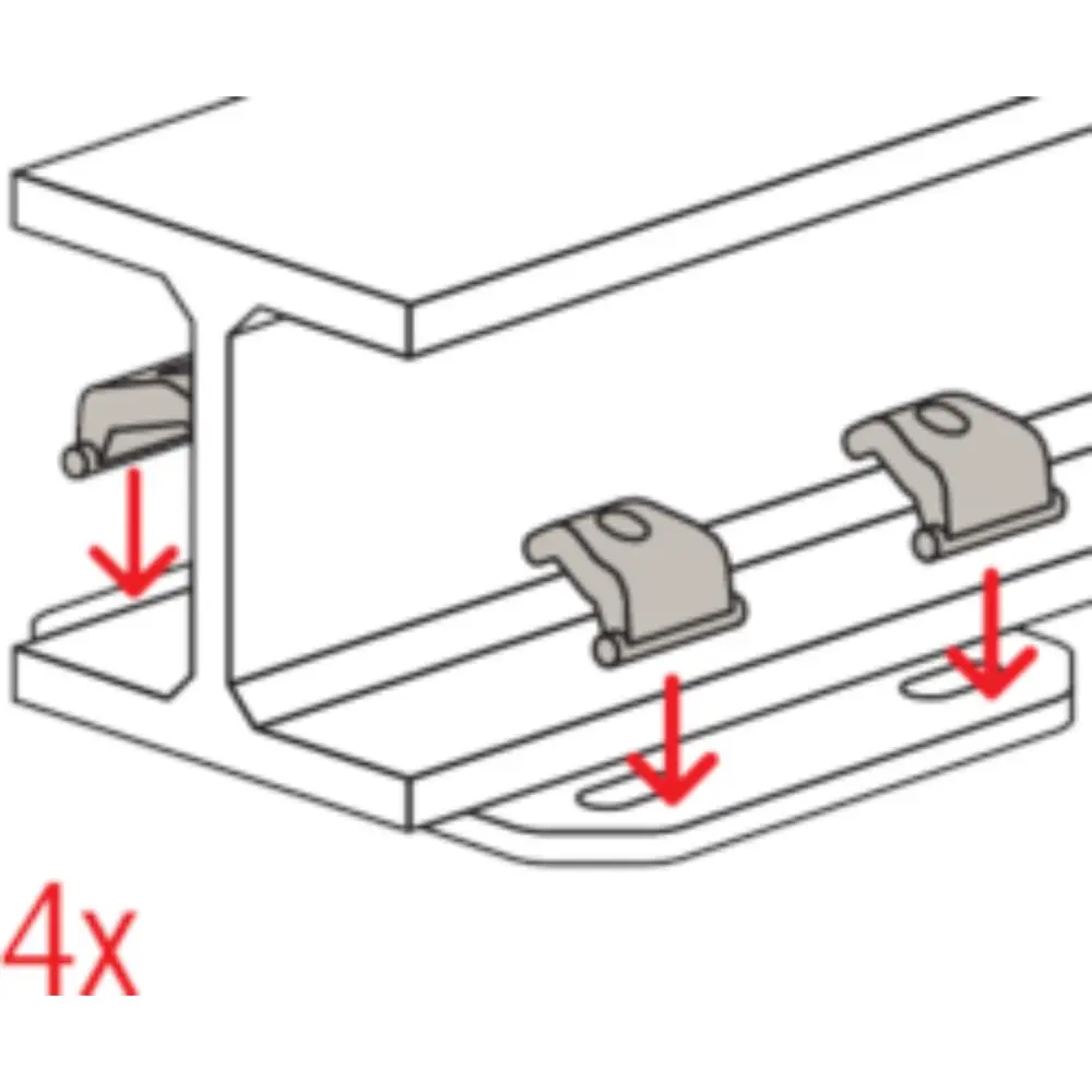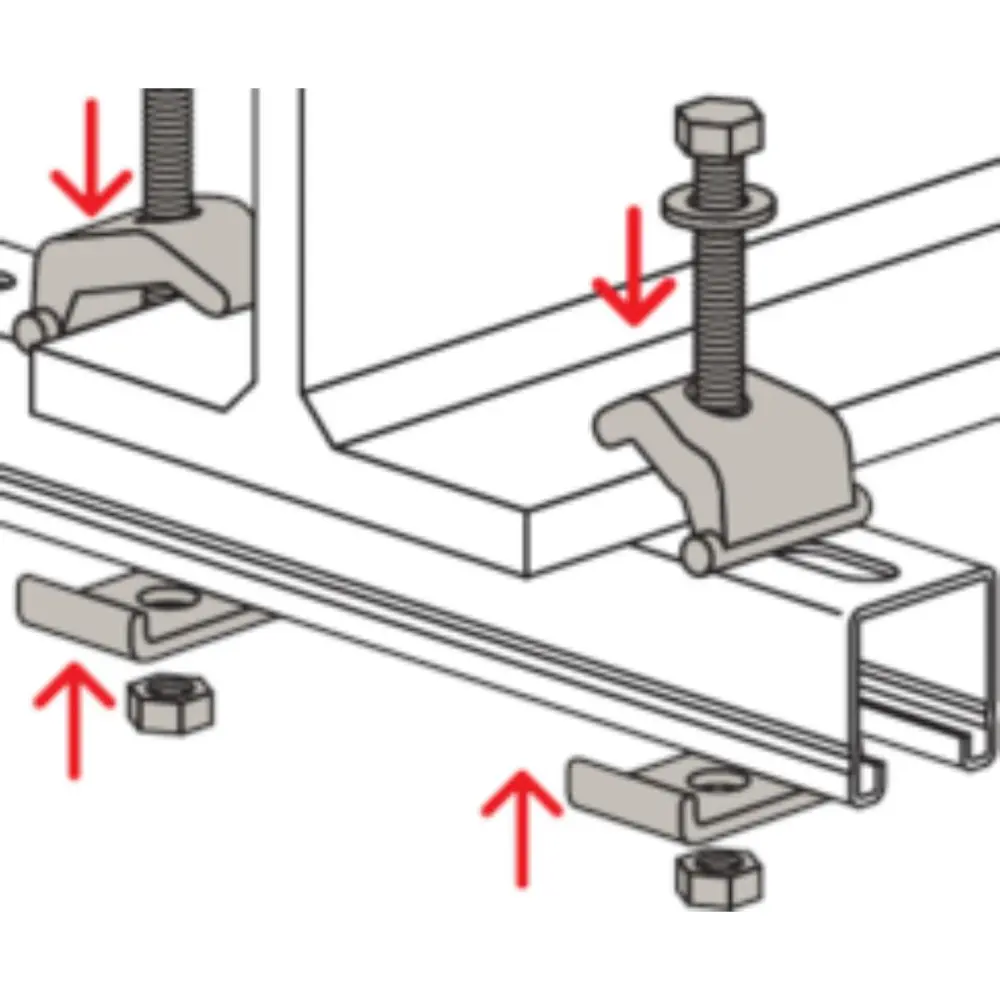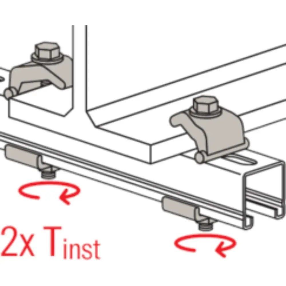 Die Trägerklammer TKLP ermöglicht die einfache Befestigung von FUS Schienenprofilen und Stahlplatten an Stahlträgern ohne Bohren und Schweißen. So können Versorgungsleitungen schnell und einfach mit FUS Schienen direkt an der Stahlkonstruktion befestigt werden.