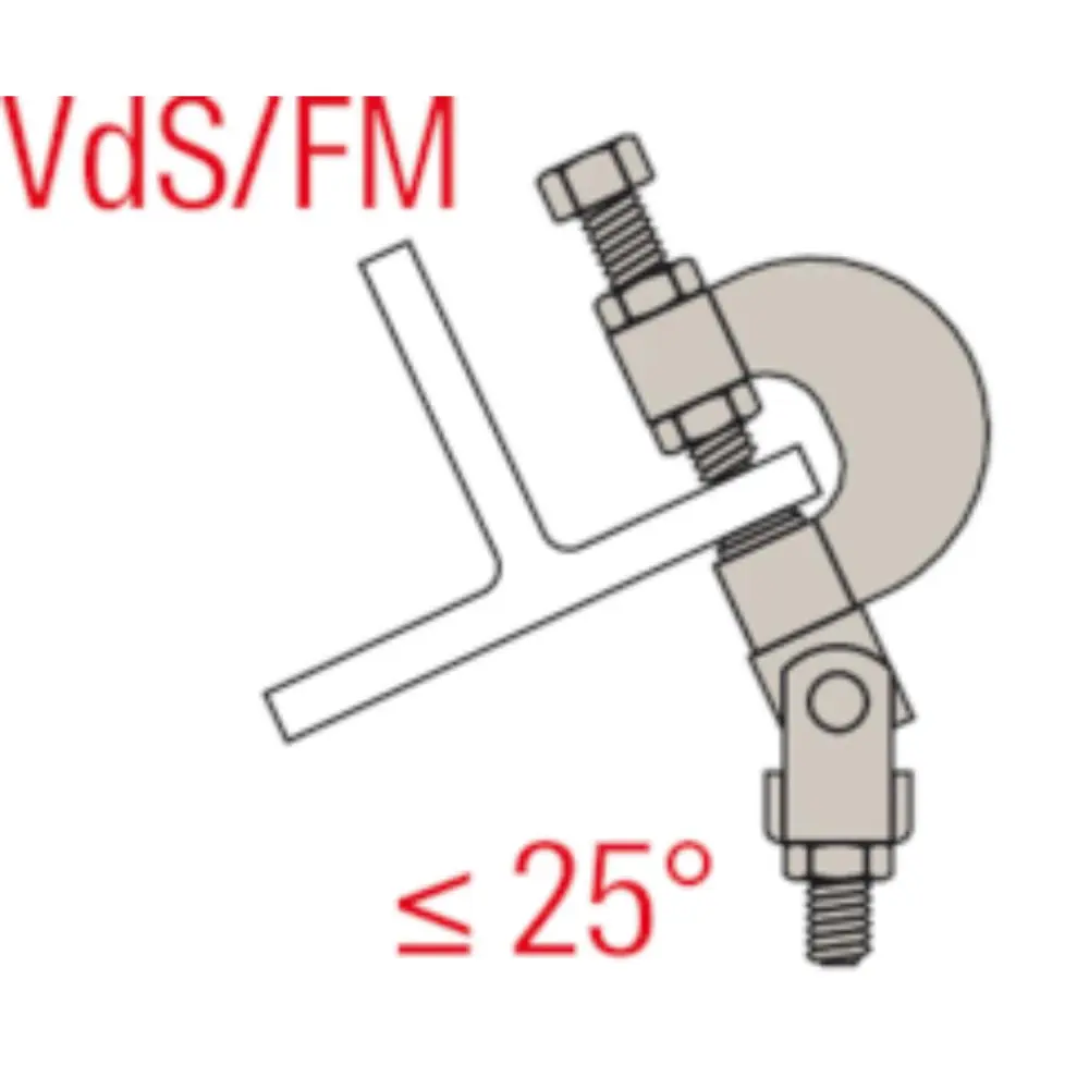 Die fischer Trägerklammer TKLG eignet sich für die Befestigung von Rohrleitungen, insbesondere Sprinklerrohren, an geneigten Stahlträgern ohne Schweißen und Bohren. Die Trägerklammer wird mit einer Schraube fixiert. Durch das bewegliche Gelenk mit Gewindeaufnahme M8 oder M10 erlaubt die TKLG eine Montage an geneigten Stahlträgern. Durch die integrierte Gewindeaufnahme lassen sich Gewindestangen einfach montieren. Die TKLG verfügt über ein FM- bzw. VdS Zulassung und erlaubt dadurch den Einsatz in ortsfesten Sprinkleranlagen . Gefertigt wird die TKLG aus hochwertigem Stahl und ist zum Schutz vor Korrosion galvanisch verzinkt.Prüfzeichen / Zulassungen