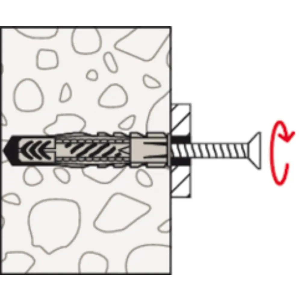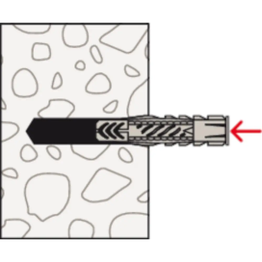 Der fischer Universaldübel UX ist der Allrounder aus hochwertigem Nylon. Der Dübel hält in Beton, aber auch in Porenbeton, in Mauerwerk und Gipskarton- sowie Gipsfaserplatten. In diesen Baustoffen verknotet der Dübel. Mit dem fischer Universaldübel UX lassen sich beispielsweise Leuchten, Gardinenschienen, leichte Schränke und Sockelleisten befestigen.Baustoff
