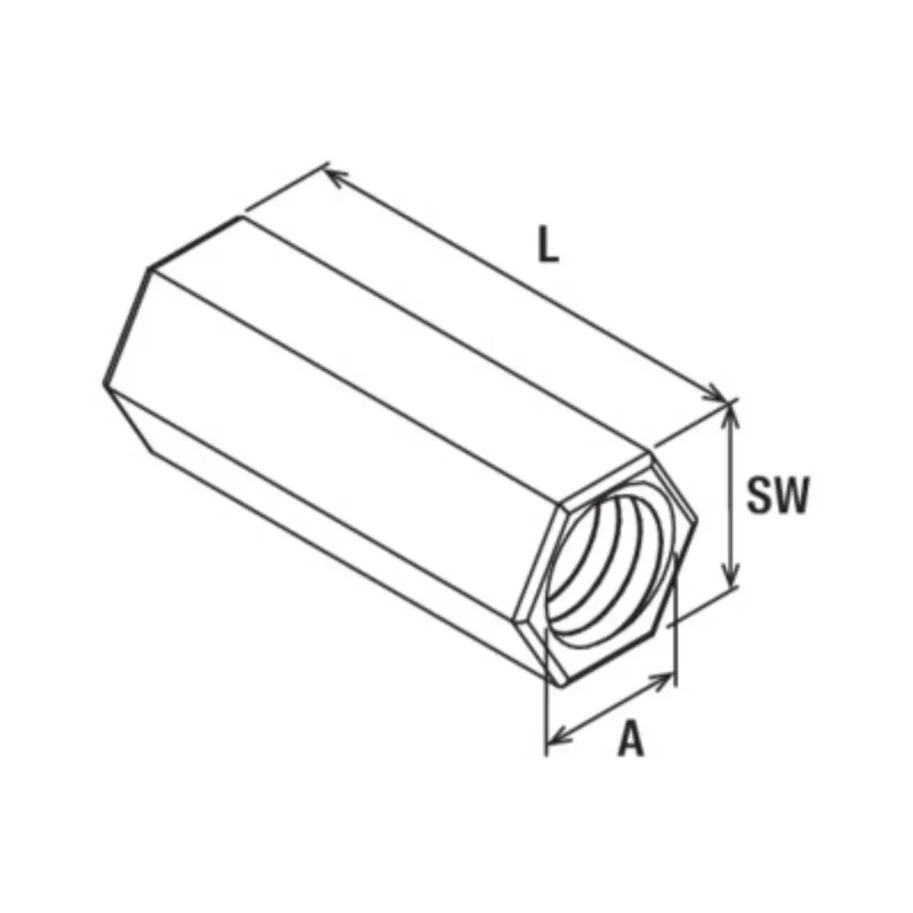 fischer Verlängerungsmuffe in Edelstahl A4zur Verbindung von Gewindestangen. Mit Außensechskant für gängige Schlüsselweiten.