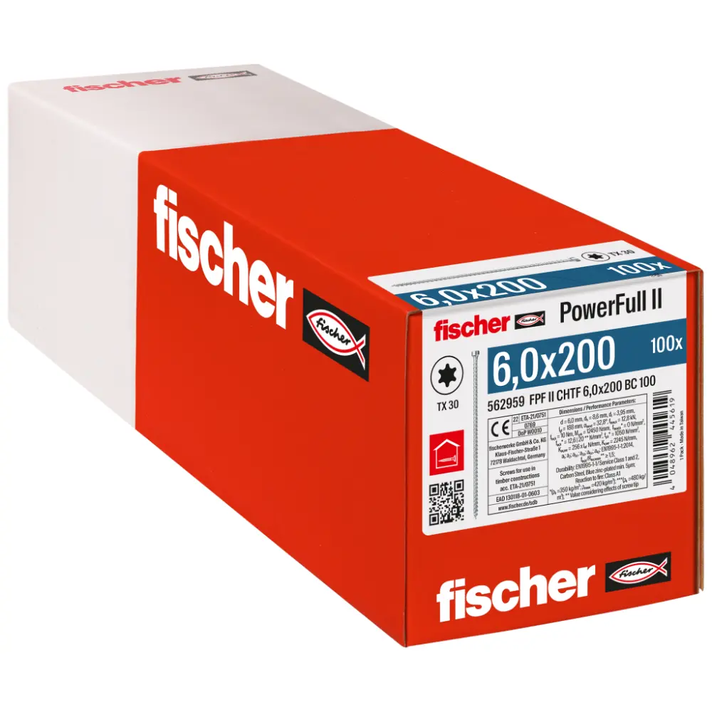 Fischer Vollgewindeschraube 6,0x200 PowerFull FPF II CHTF 6/8 BC, Vollgewinde, Zylinderkopf, TX