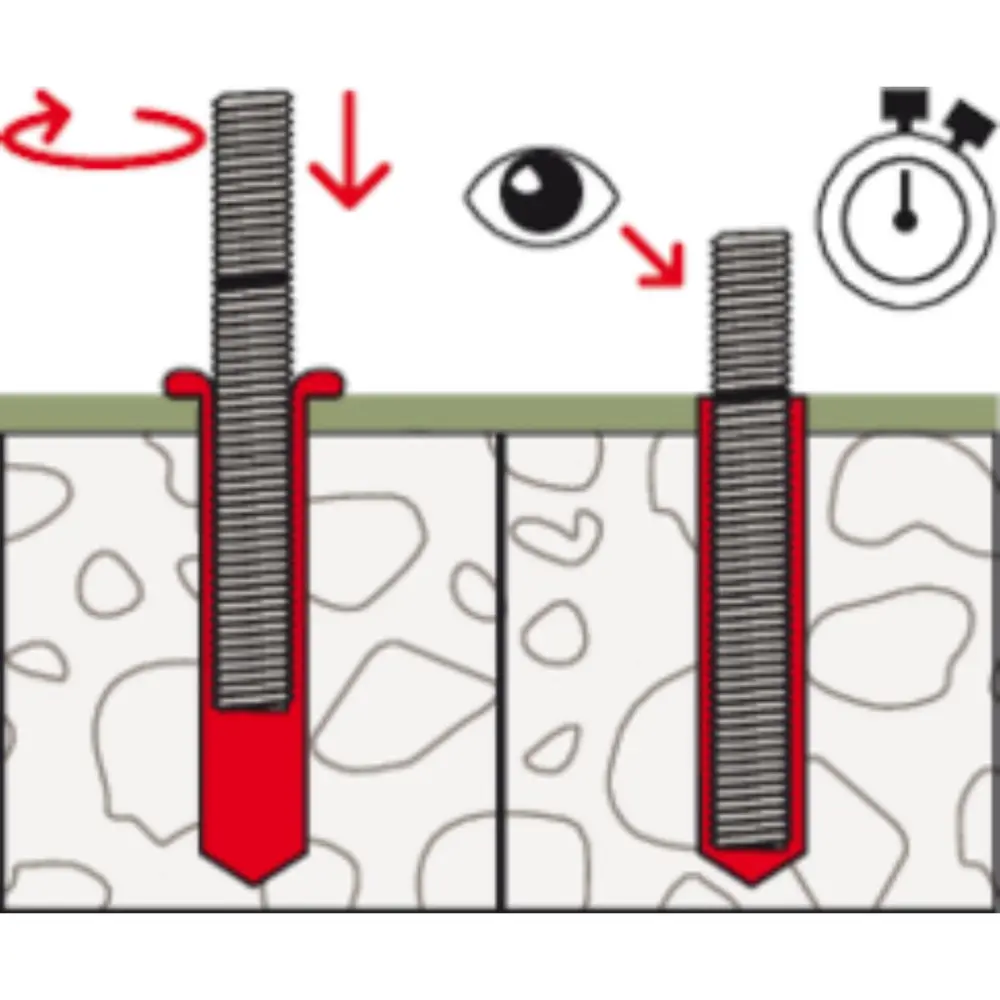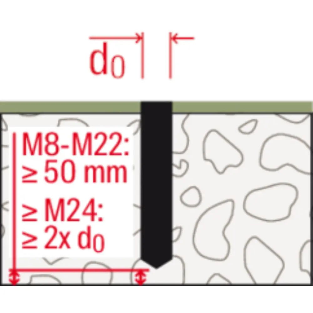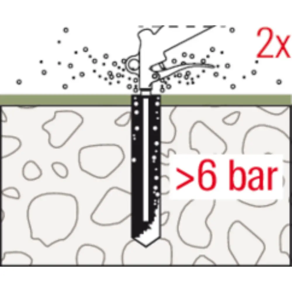 Bei Verankerungen in beschichtetem Beton kann optional zusätzlich das WHG Set zur Abdichtung des Bohrloches und Kennzeichnung der Verankerung zum Einsatz kommen. Mit dem WHG Set wird der Ringspalt verfüllt und zuverlässig abgedichtet, und der Befestigungspunkt als WHG-konforme Verankerung gekennzeichnet. Dies ermöglicht die Überprüfung der Verankerung bei den vorgeschriebenen Kontrollen.