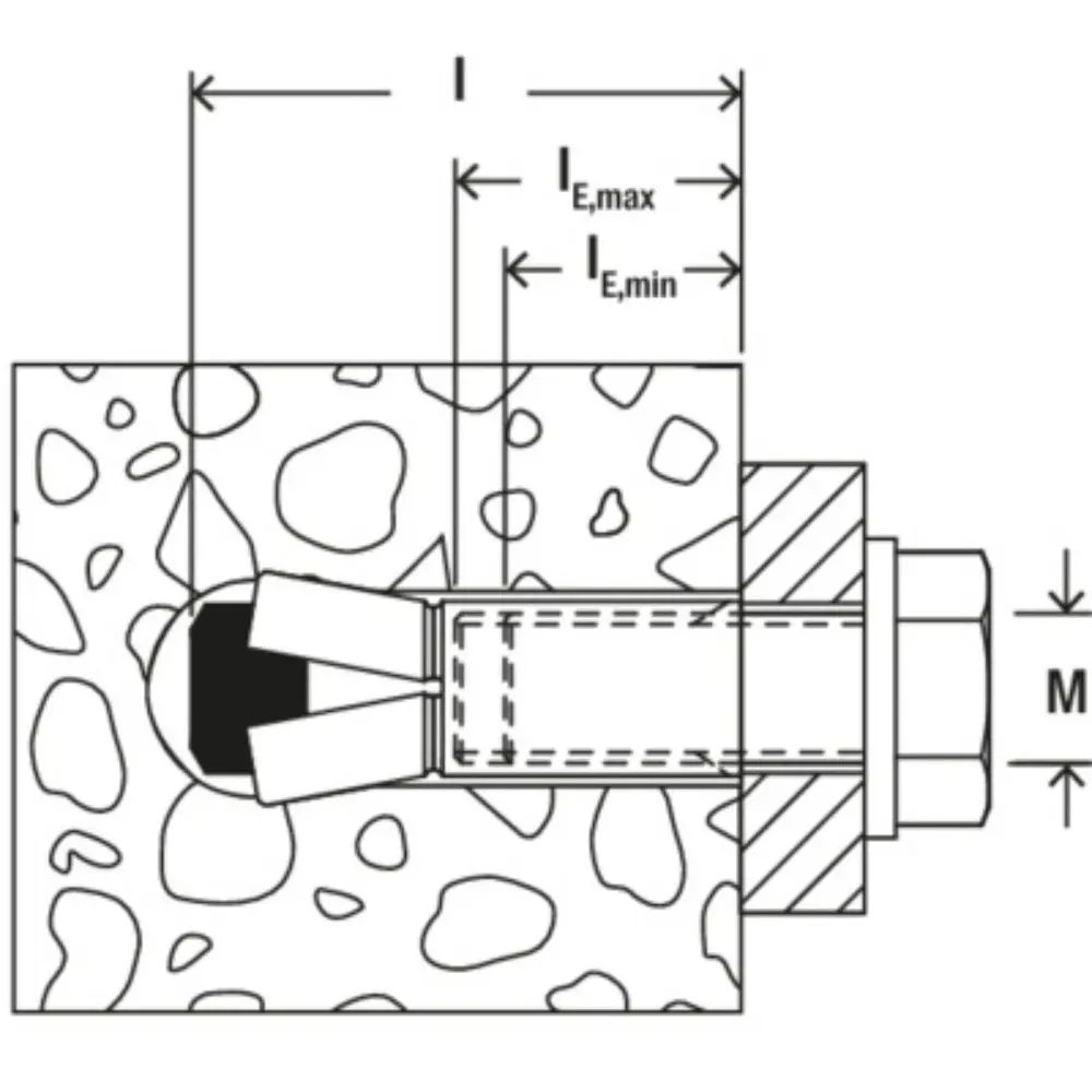 Der fischer ZYKON-Einschlaganker FZEA II ist ein Innengewindeanker aus galvanisch verzinktem Stahl. Mit dem Spezialbohrer FZUB wird in einem Arbeitsgang das hinterschnittene Bohrloch erstellt. Der Hinterschnittanker wird in der zeitsparenden Durchsteckmontage gesetzt. Mit dem Setzwerkzeug FZED Plus wird die Spreizhülse durch das Einschlagen des innen liegenden Spreizstifts über den Konus getrieben. Dieser füllt das hinterschnittene Bohrloch formschlüssig aus. Der fischer ZYKON-Einschlaganker FZEA II ist für Einzelbefestigungen von Rohrleitungen, abgehängten Decken und Sprinkleranlagen im Innenbereich in gerissenem Beton geeignet.Prüfzeichen / Zulassungen