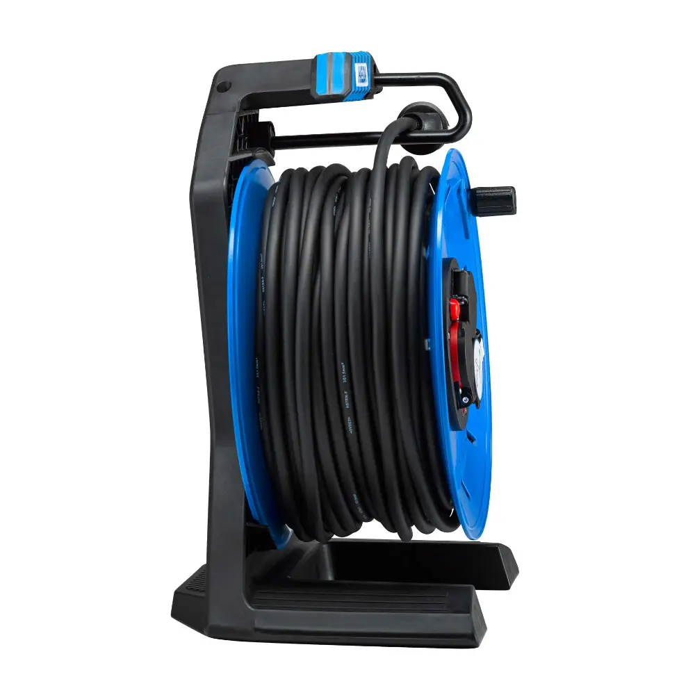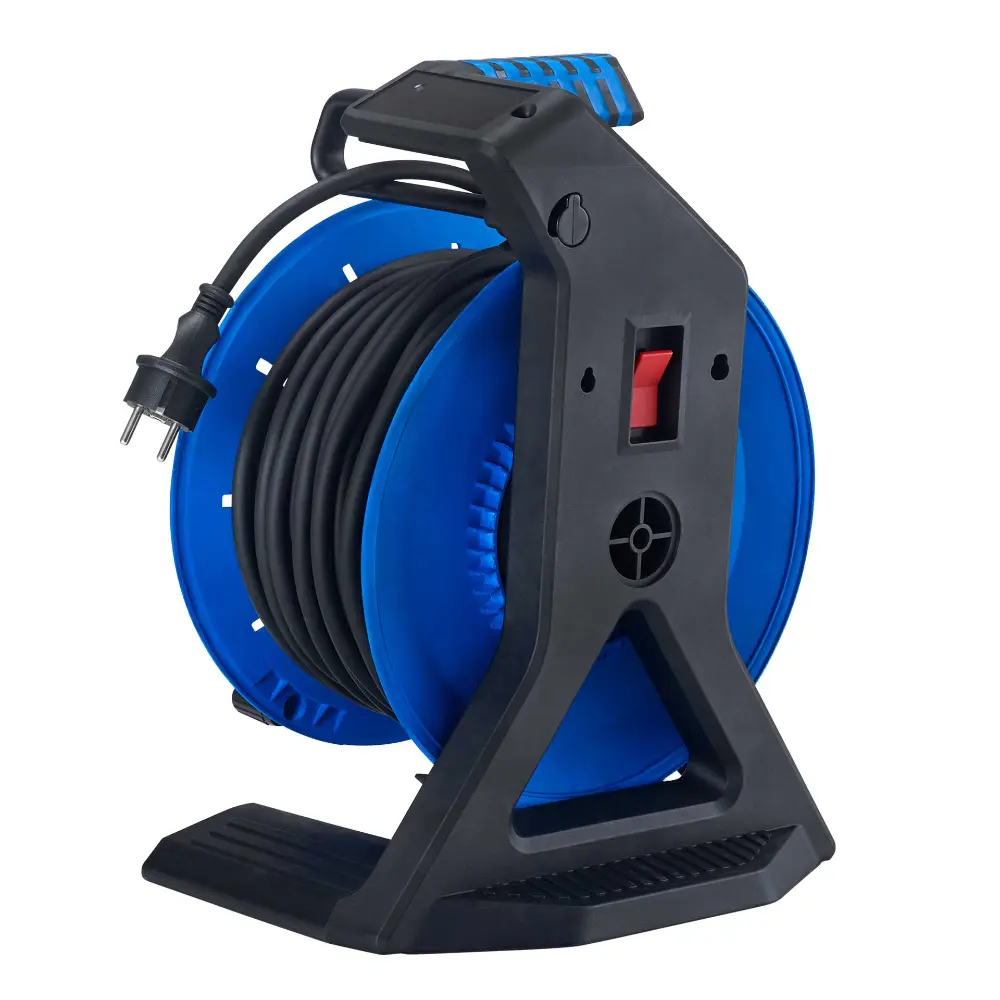 - Große Trittfläche: Die praktischen, großen Trittflächen sorgen für Stabilität der Kabeltrommel beim Auf- und Abwickeln. Sie bieten genug Platz zum Auftreten, auch mit Arbeitsschuhen.