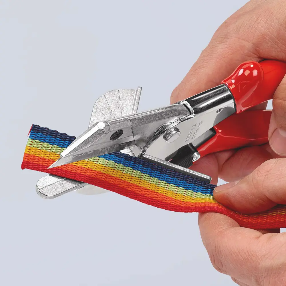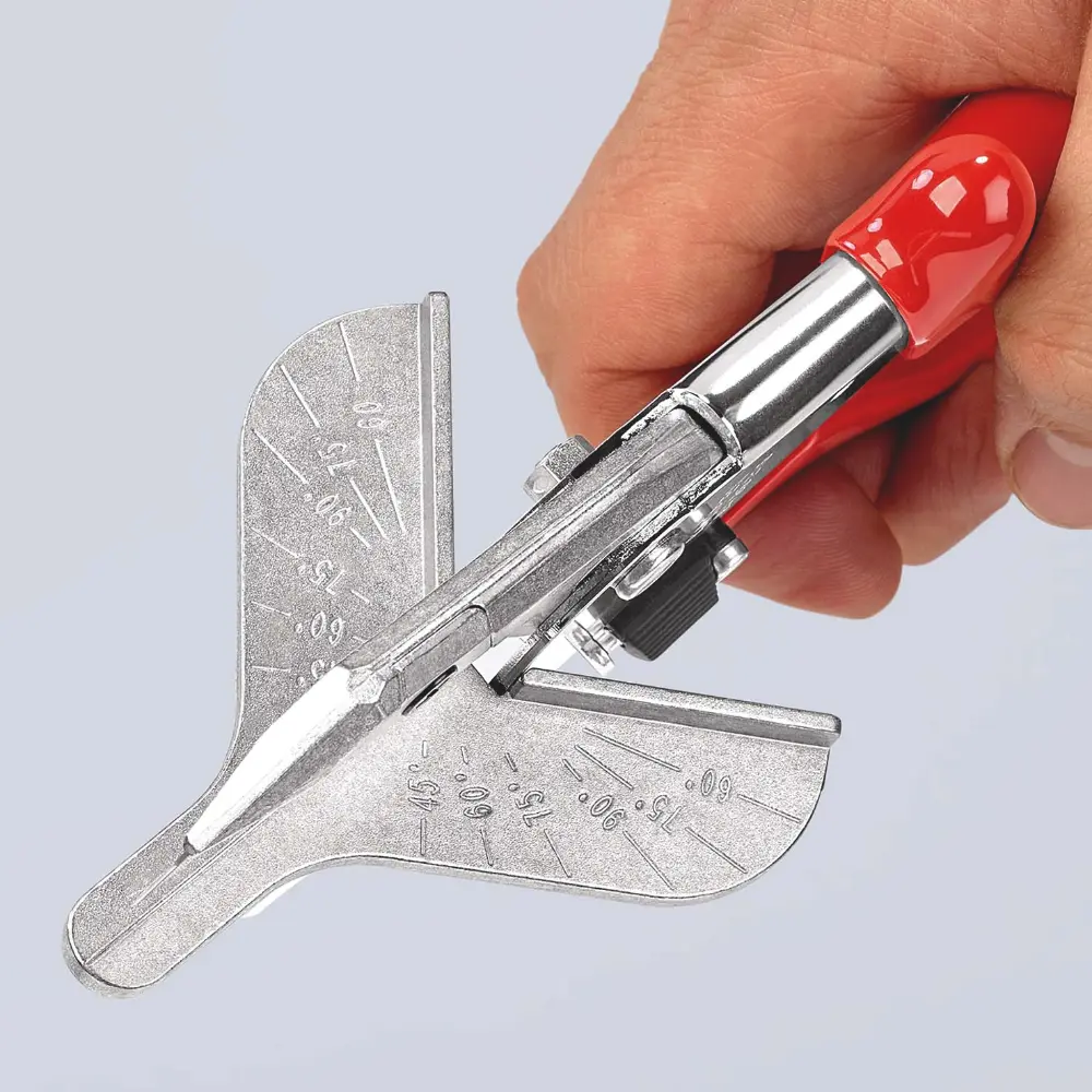 - Erweiterte Produktinformationen Gehrungsschere für Kunststoff- und Gummiprofile mit Kunststoff-Hüllen verchromt 215 mm von KNIPEXzum quetschfreien Schneiden… Mehr