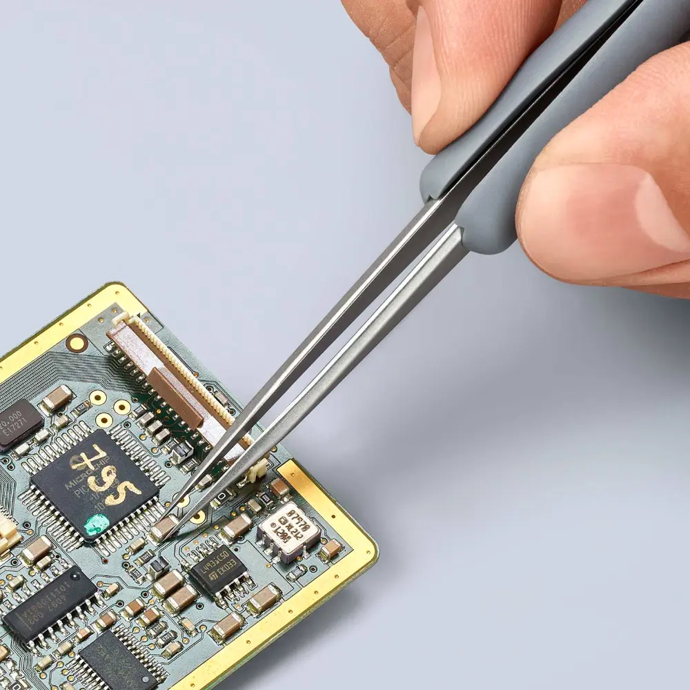 - Produktinformation Präzisionspinzette mit gummiertem Griff ESD gummierter Griff 112 mm von KNIPEXFür den sicheren Umgang mit elektronischen Bau… Mehr