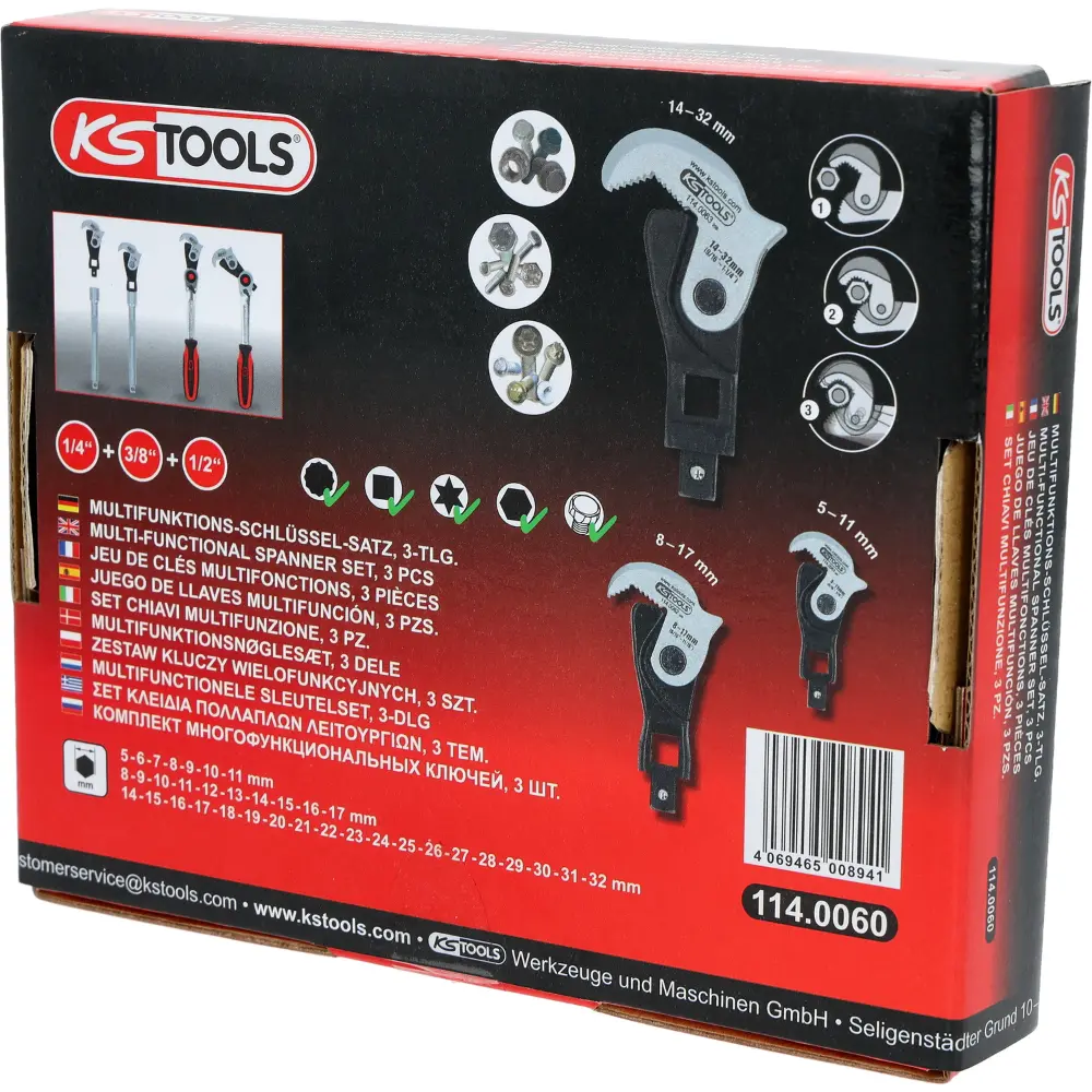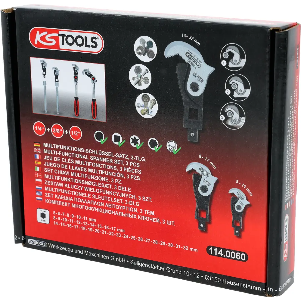 KS TOOLS 1/4" + 3/8" + 1/2" Multifunktions-Schlüssel-Satz, 3-tlg