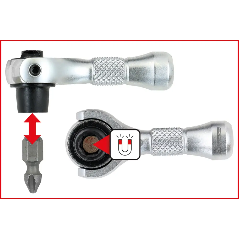- bestehend aus 1/4" Bit-Umschaltknarre und 1/4" Umschaltknarre