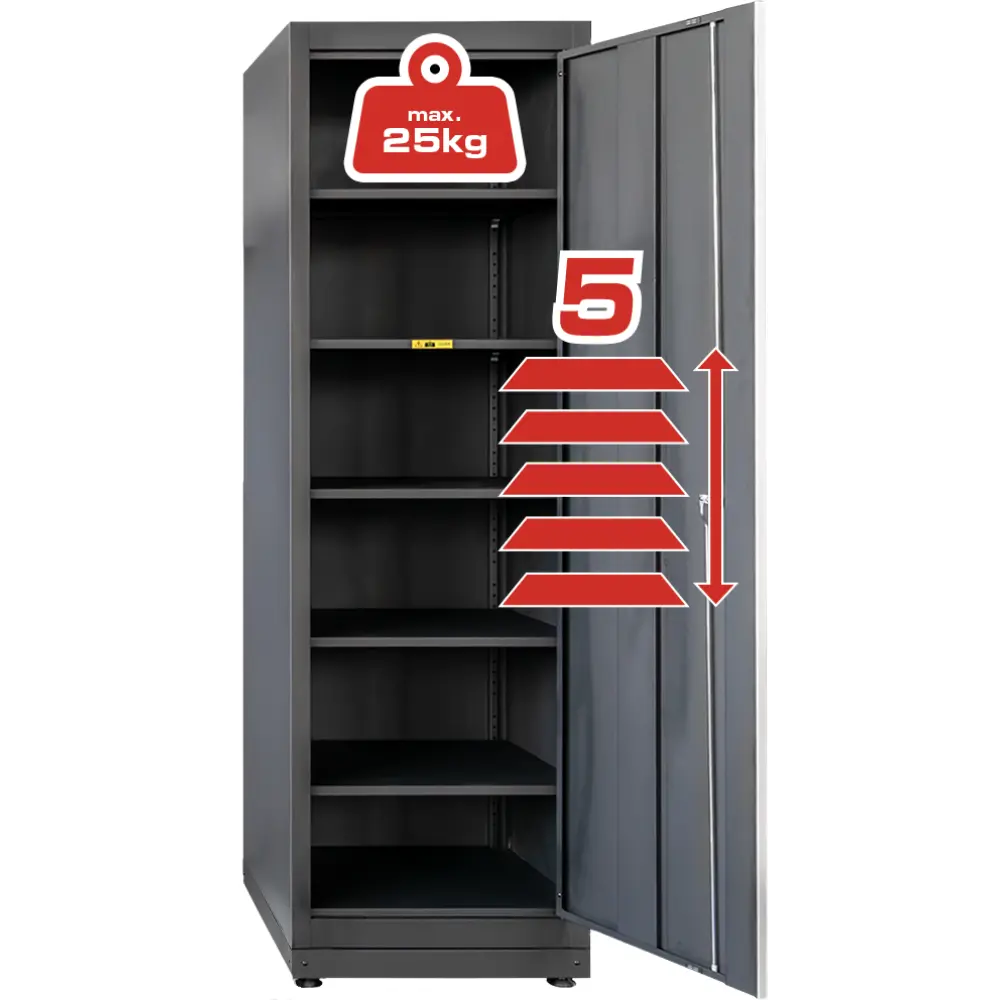 - XXL-Schrank mit 5 Einlegeböden (1x fest + 4x variabel)
