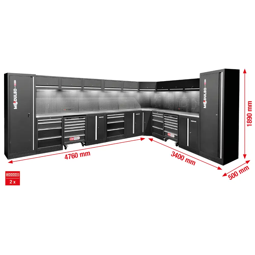 KS TOOLS Werkstatt-Schranksystem, L-Form, 4760 x 3400 mm