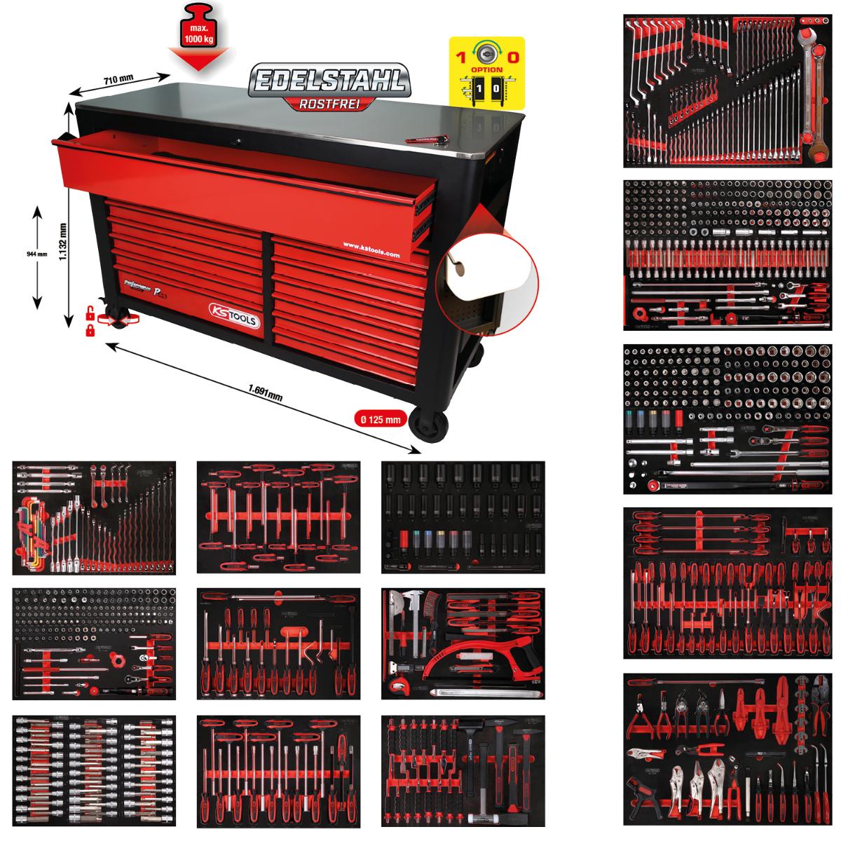 Performanceplus Werkstattwagen-Satz P45 mit 950 Werkzeugen für 13 Schubladen von KS Tools