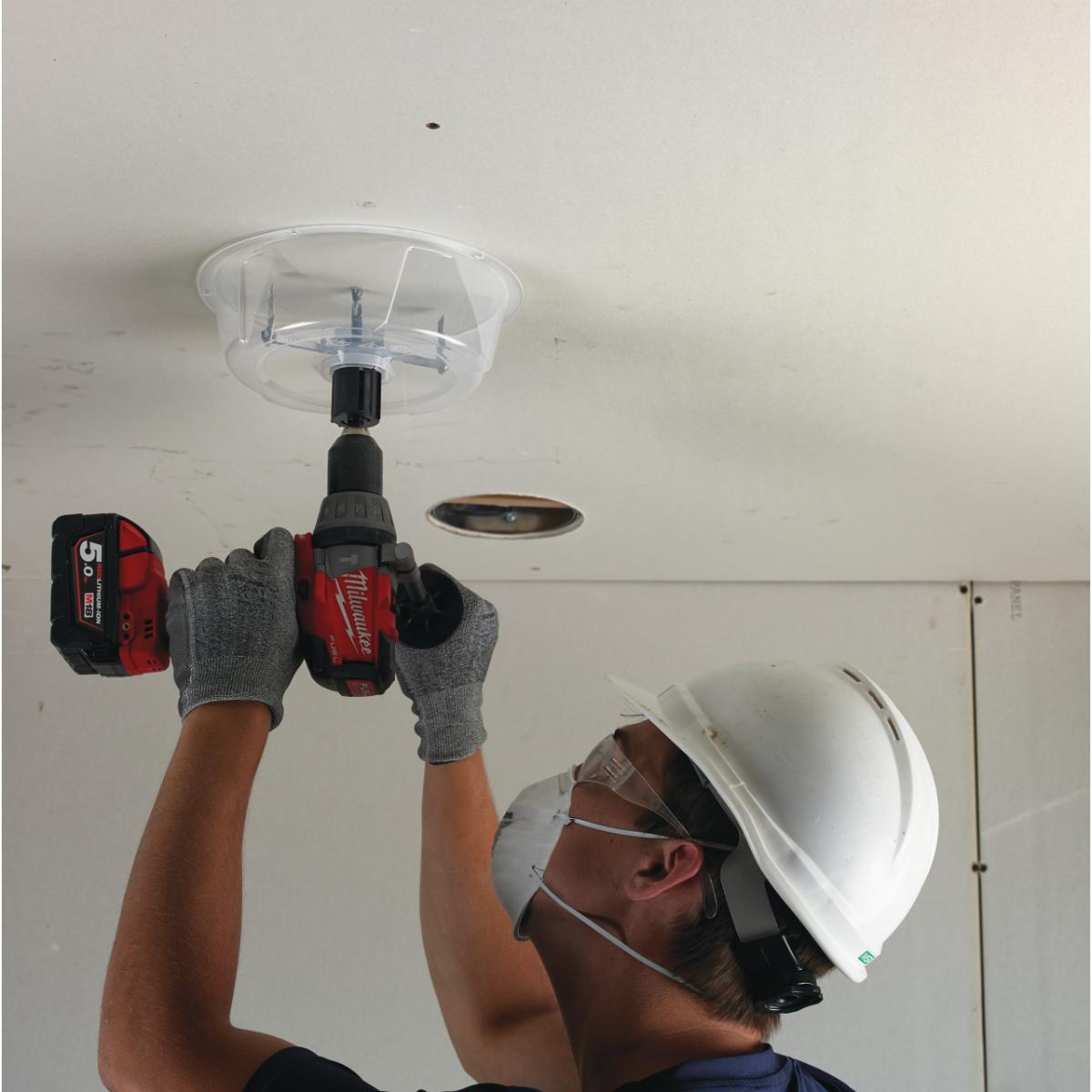 - Produktinformation Zum Schneiden von Öffnungen für Lüftungsrohre, Ventilatoren, Einbauleuchten oder LautsprecherInklusive Staubfangteller für s… Mehr