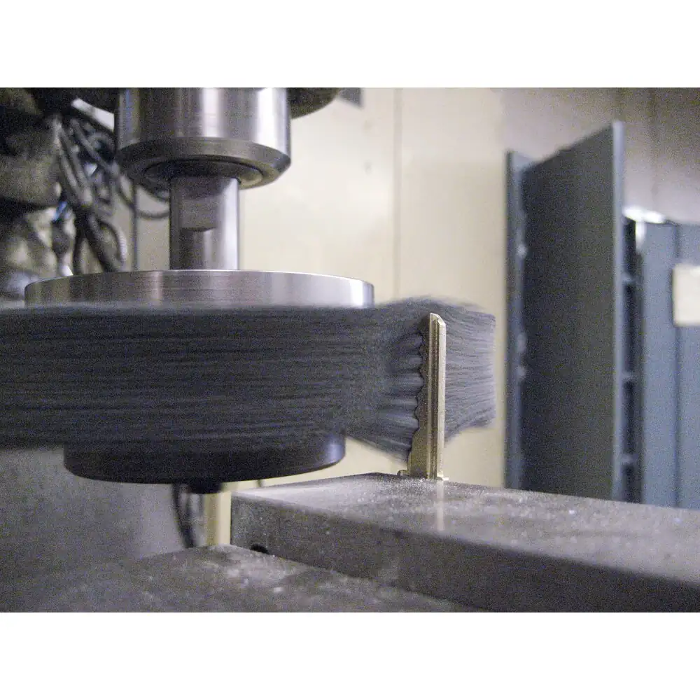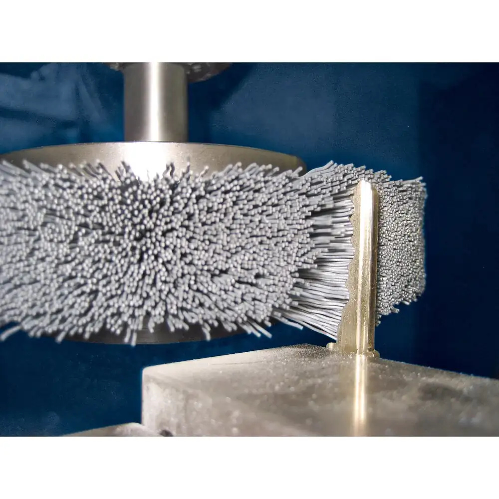- Schleifkörner sind in flexiblen Kunststofffilamenten eingebunden, wodurch der Besatz nicht nur an der Spitze, sondern auch mit den Seiten arbeitet.
