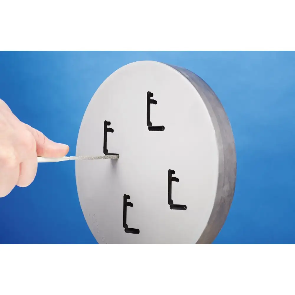 - Zugesetzte Diamantfeilen können in Petroleum oder antistatischem Kunststoffreiniger mit einer Feilenbürste gereinigt werden. Alternativ kann auch eine Ultraschallreinigung erfolgen. Oftmals reicht einfaches Ausklopfen aus.