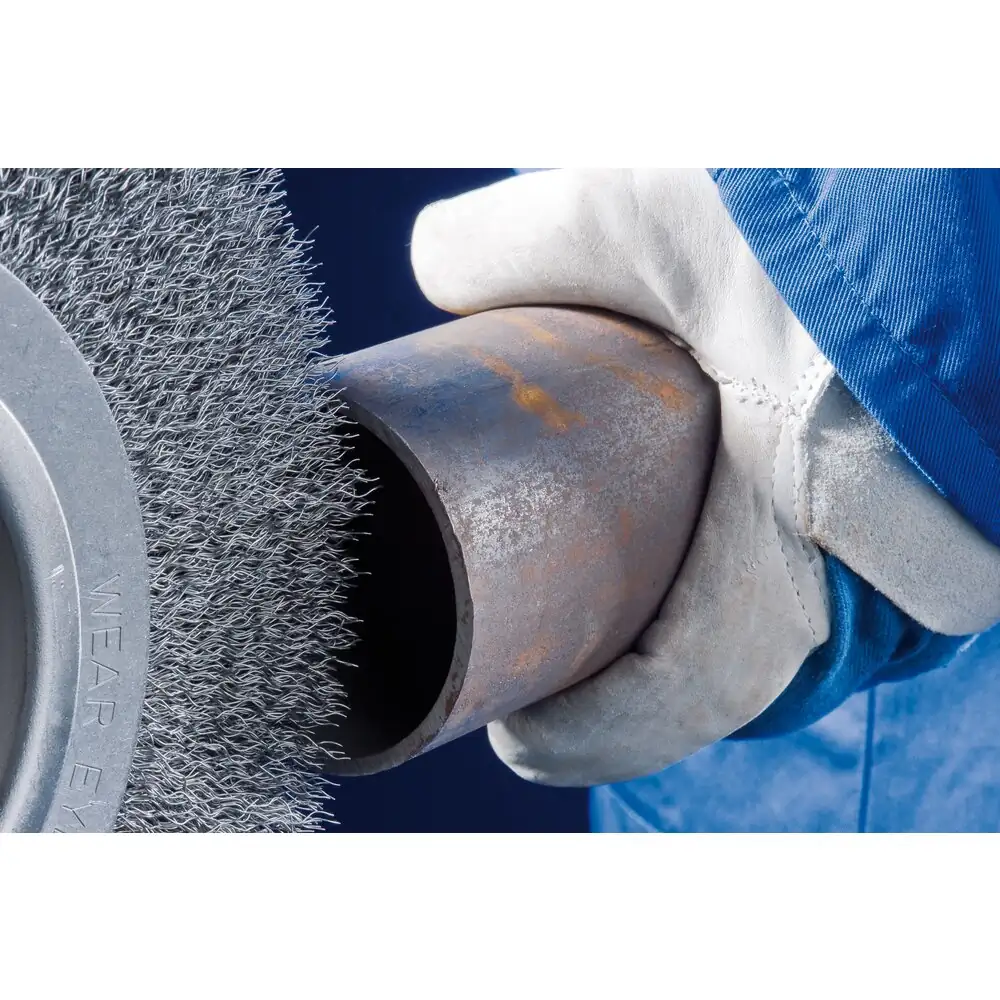 Besonders gut zum Entgraten von Rohren, Schnittkanten und Kleinteilen auf stationären Maschinen geeignet. Stahldraht ist das gebräuchlichste Besatzmaterial. Bürsten mit dem Besatzmaterial Stahldraht eignen sich besonders gut zur Oberflächenbearbeitung und zum Entgraten. PFERD TOOLS Spezialdraht verfügt über eine hohe Zug- und Biegewechselfestigkeit. Dieser gewährleistet eine optimale Abnutzung des Drahtes sowie eine hohe Standzeit, auch bei extremen Bürstanwendungen. Stahldraht hält Temperaturen bis 300 °C stand.Technische Daten: