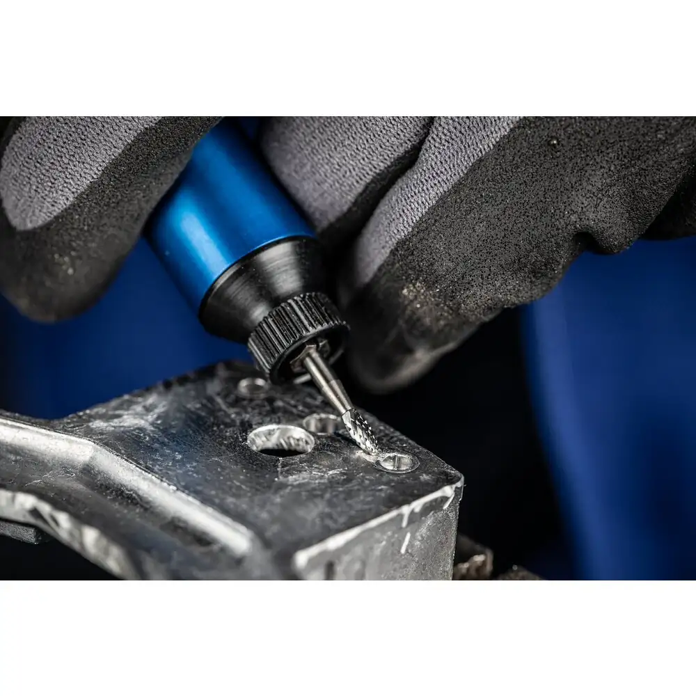 - Für den wirtschaftlichen Einsatz von Frässtiften wird im oberen Drehzahl-/Schnittgeschwindigkeitsbereich gearbeitet. Setzen Sie Frässtifte mit einem Schaftdurchmesser von 3 mm auf Antrieben mit einer Leistung von 75 bis 300 Watt ein.