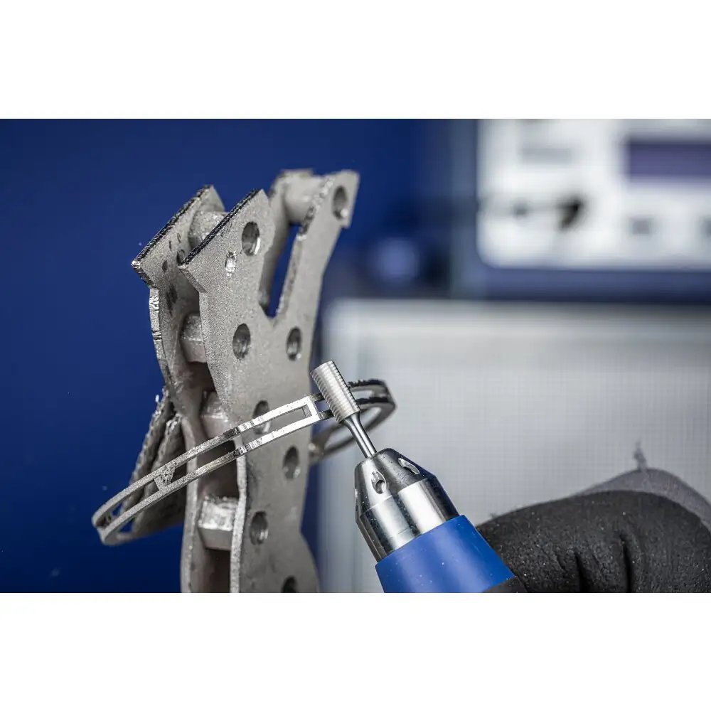 - Für den wirtschaftlichen Einsatz von Frässtiften wird im oberen Drehzahl-/Schnittgeschwindigkeitsbereich gearbeitet. Setzen Sie Frässtifte mit einem Schaftdurchmesser von 3 mm auf Antrieben mit einer Leistung von 75 bis 300 Watt ein.