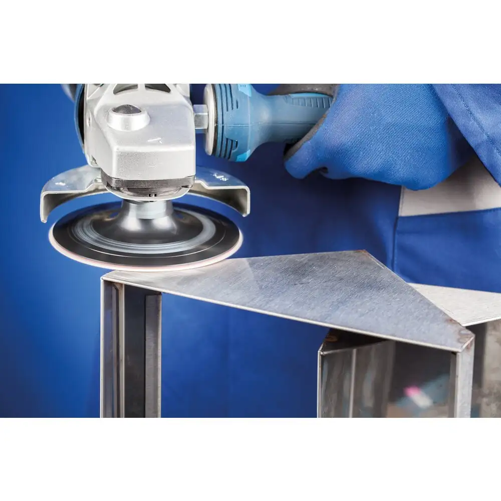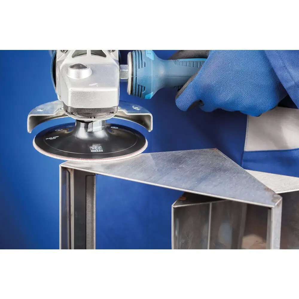 Für die Bearbeitung unterschiedlicher Werkstückgeometrien und Werkstoffe bietet PFERD TOOLS eine breite Palette von Werkzeugen aus Schleifmittel auf Unterlage an. Sie bestehen aus einem Trägermaterial, einer Grundbindung sowie einer Deckbindung zur Fixierung der Schleifkörner. Je nach Korngröße kann mit Werkzeugen aus Schleifmittel auf Unterlage ein hoher Materialabtrag oder ein sehr feines Oberflächenfinish erzielt werden. Die zur Auswahl stehenden Trägermaterialien unterscheiden sich in ihren Eigenschaften wie Reißfestigkeit, Flexibilität und Verschleiß. Mit der Wahl der geeigneten Unterlage wird das Schleifwerkzeug an die Erfordernisse der vorgesehenen Anwendung angepasst: Papier findet sich in der holzverarbeitenden Industrie und im Handwerk, z. B. bei Schreinern, Malern und Lackierern, wieder, Gewebe wird überwiegend in der Metallbearbeitung eingesetzt, und Vulkanfiber ist sehr verschleißfest und wird in unterschiedlichen Stärken vorwiegend für die Fertigung von Fiberschleifern verwendet. Das Set enthält 20 Klettronden der Ausführung Korund A in verschiedenen Korngrößen für den Grobschliff in Industrie und Handwerk. Klettronden eignen sich zum Schleifen von größeren Flächen. Durch das flexible System aus Klettronde und Klettrondenhalter ist auch ein Einsatz auf Konturen möglich. Mit dem Klettrondenhalter können Klettronden auf handelsüblichen drehzahlregelbaren oder langsam laufenden Winkelschleifern mit M14-Aufnahme eingesetzt werden.Technische Daten: