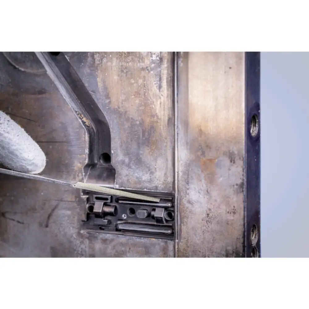 - Zugesetzte Diamantfeilen können in Petroleum oder antistatischem Kunststoffreiniger mit einer Feilenbürste gereinigt werden. Alternativ kann auch eine Ultraschallreinigung erfolgen. Oftmals reicht einfaches Ausklopfen aus.
