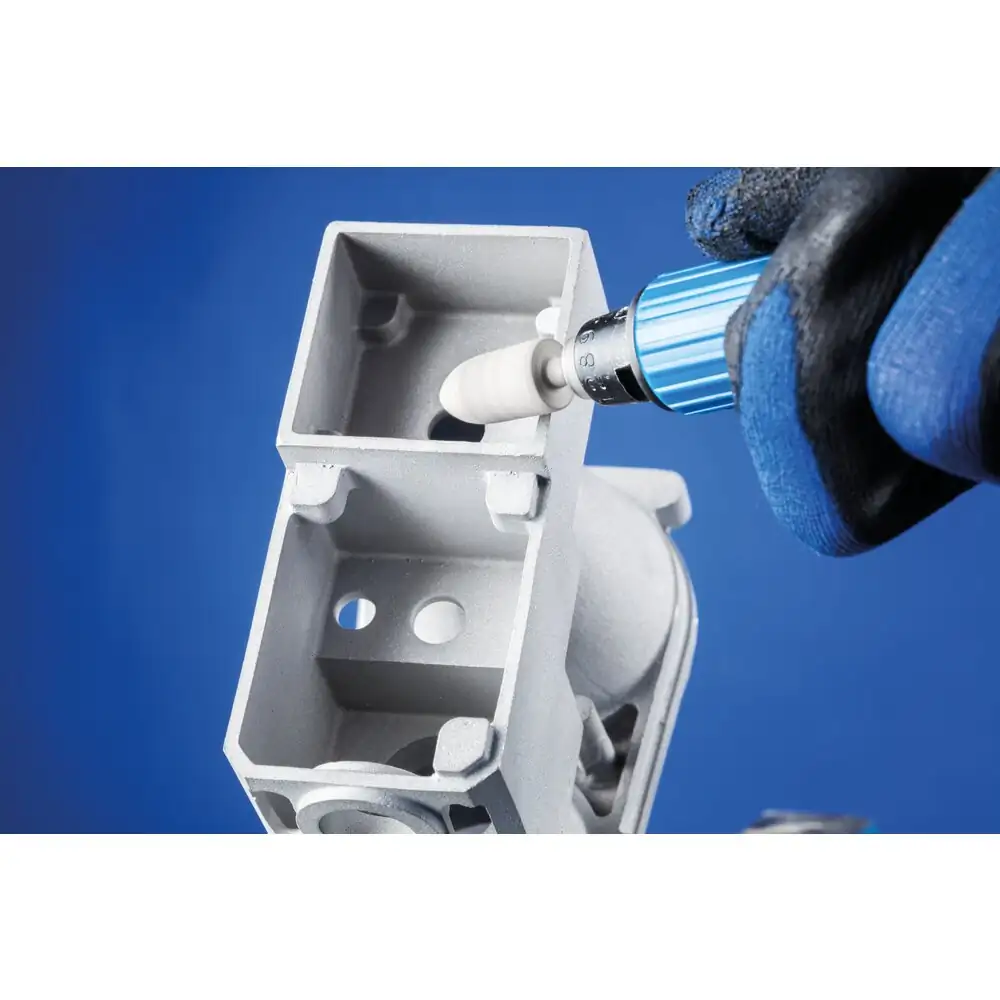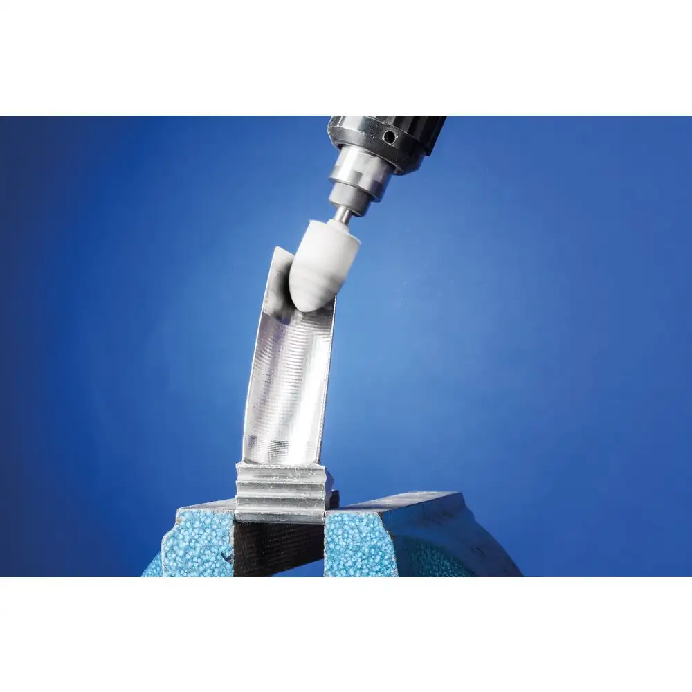 Poliflex-Feinschleifwerkzeuge werden in hoher Formtreue, hervorragender Qualitätskonstanz und engen Maßtoleranzen gefertigt. Sie eignen sich ideal zum Feinschleifen, Strukturieren und zur Vorbereitung von Polierarbeiten und werden sehr häufig im Werkzeug- und Formenbau eingesetzt. Poliflex-Feinschleifwerkzeuge der Bindung TX werden mit Normalkorund gefertigt. Durch die Textilgewebeeinlagen ist die Bindung TX eine sehr harte, standfeste Bindung. Für den Einsatz auf Kanten geeignet. Schleifstift in Spitzbogenform zum Feinschleifen von Innenradien, Konturen und Übergängen.Technische Daten: