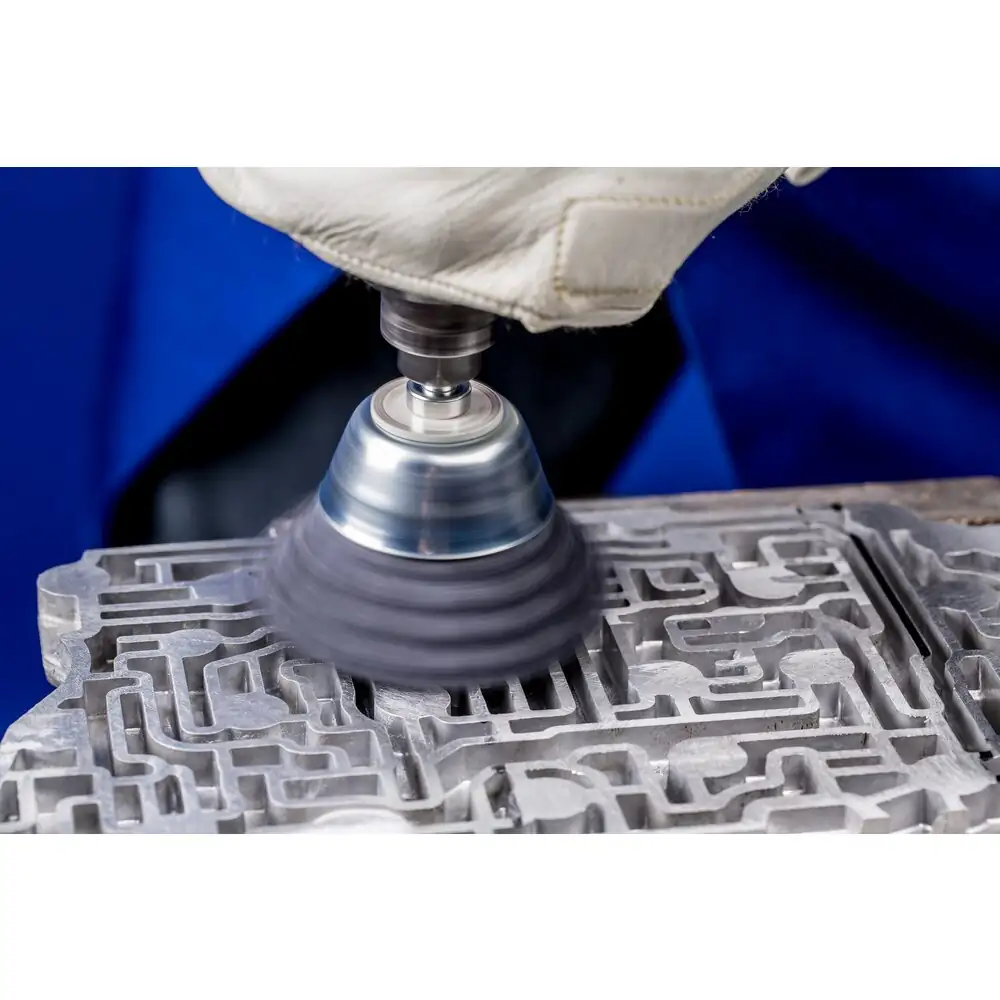 - Schleifkörner sind in flexiblen Kunststofffilamenten eingebunden, wodurch der Besatz nicht nur an der Spitze, sondern auch mit den Seiten arbeitet.