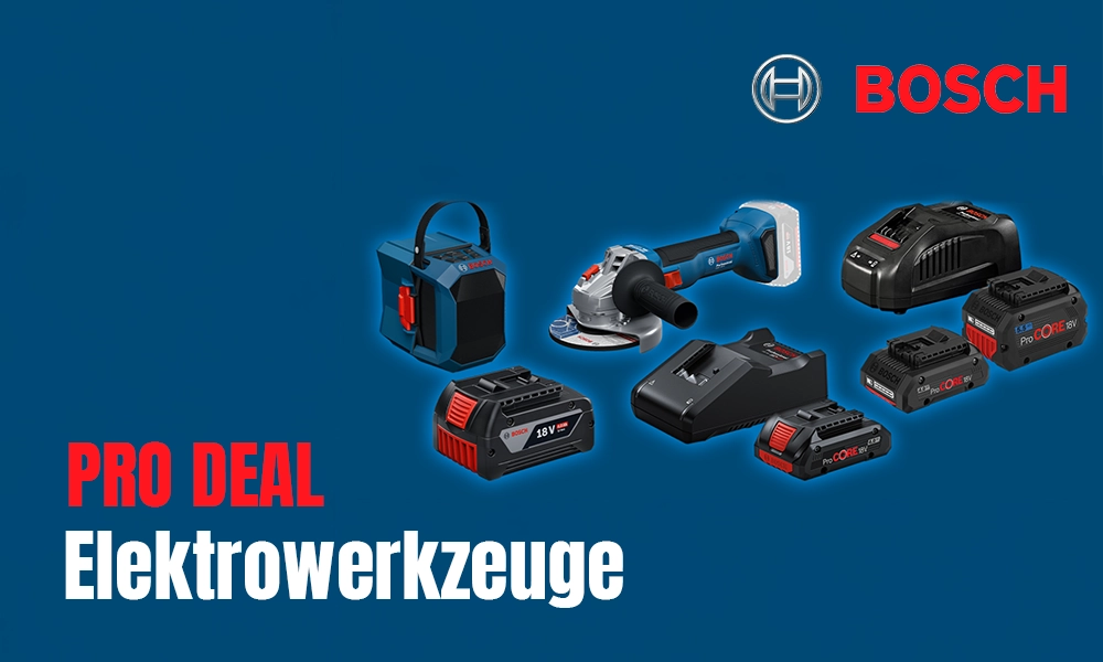 PRO Deals ist die offizielle Online-Angebotskampagne von Bosch Professional. Dich erwarten spannende Deals und tolle Gratisprodukte, die du beim Kauf zusätzlich erhältst.