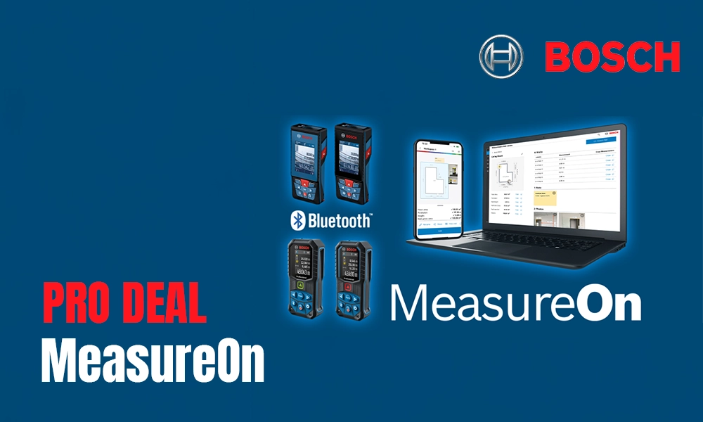 Kaufe einen Bosch Laser-Entfernungsmesser mit Connectivity und erhalte MeasureOn PRO Cloud & Export 3 Monate kostenlos dazu.