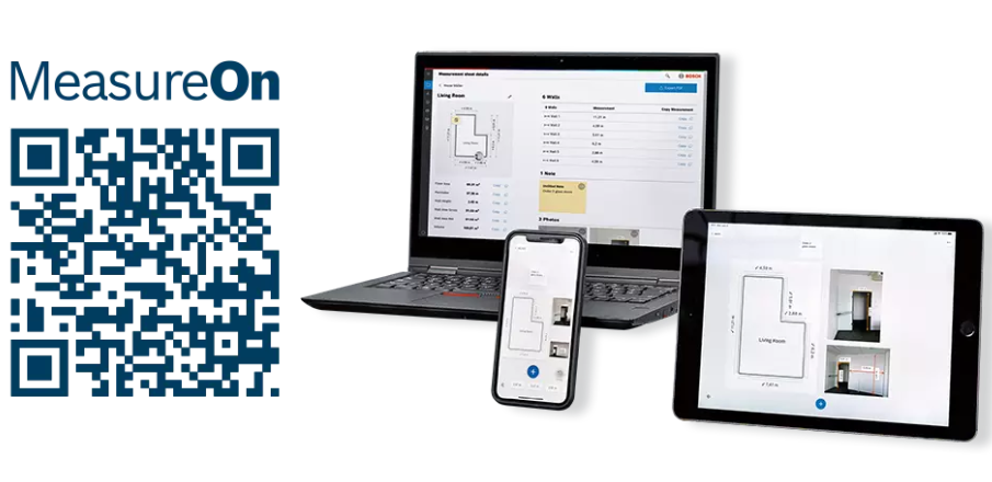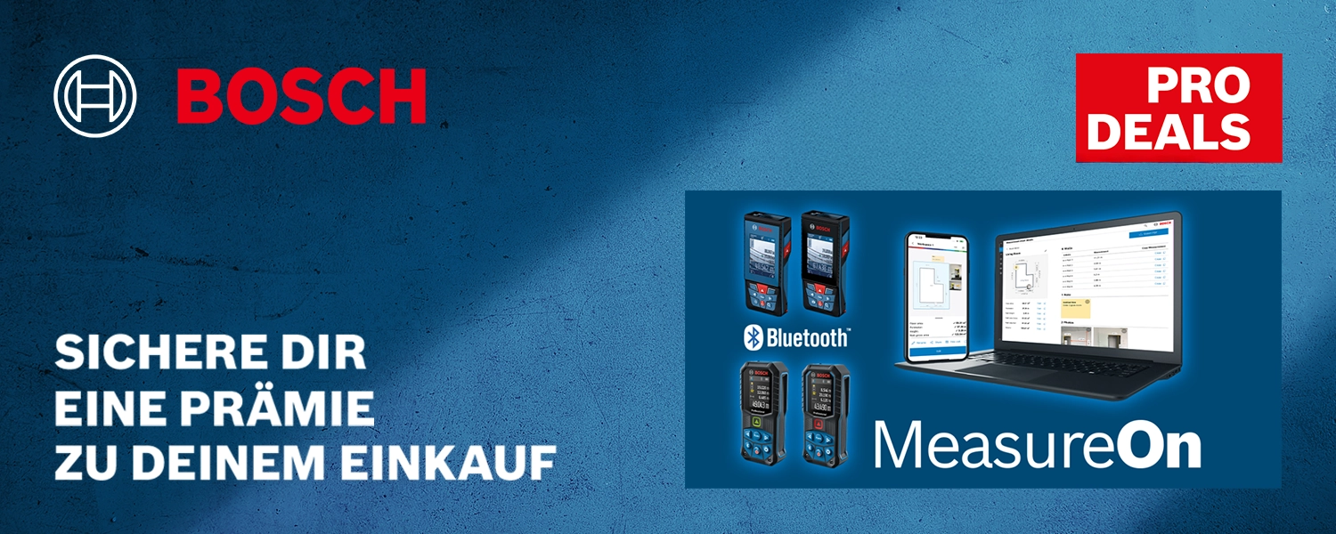Kaufe einen Bosch Laser-Entfernungsmesser mit Connectivity und erhalte 3 Monate lang MeasureOn PRO Cloud & Export kostenlos dazu.