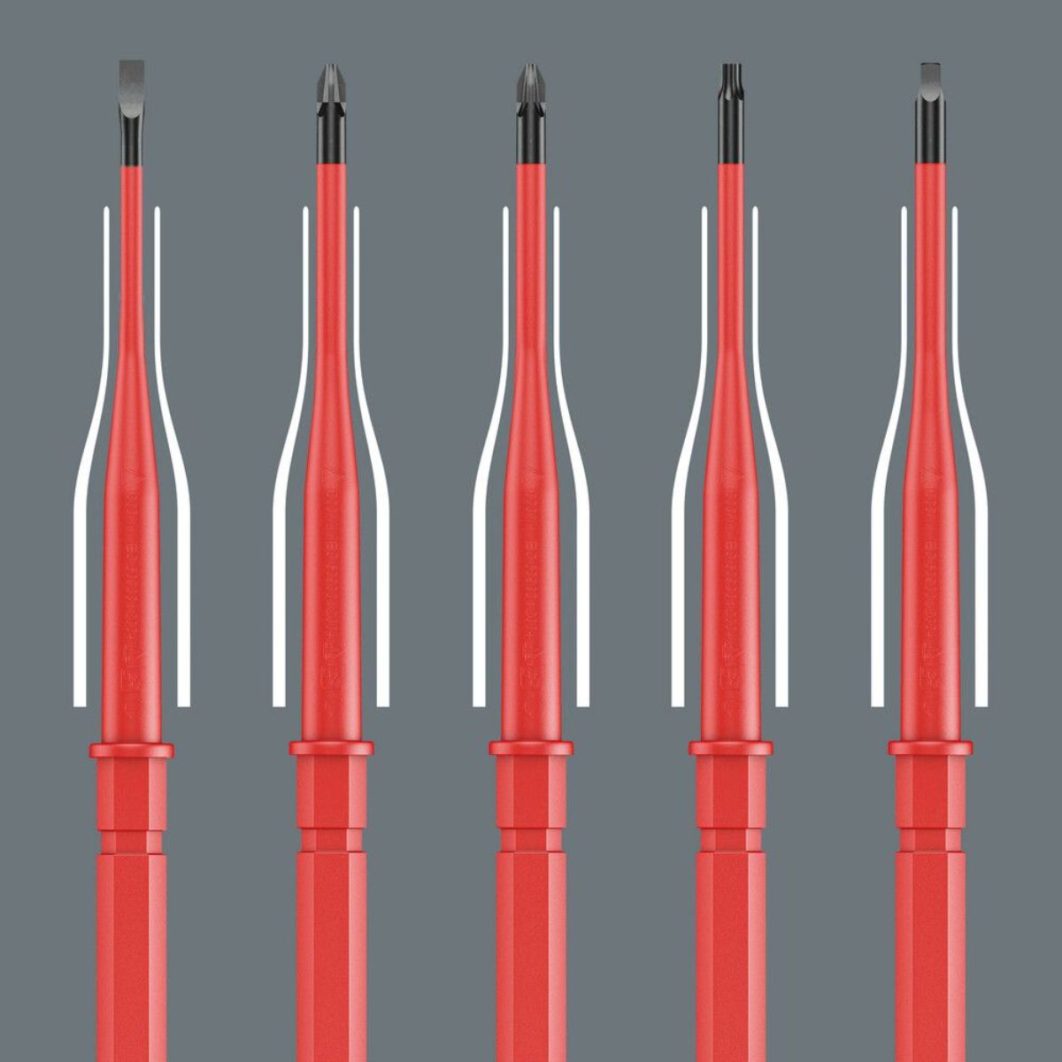 - Wechselklinge mit reduziertem Klingendurchmesser mit integrierter Schutzisolation, so können tiefliegende Schraub- und Federelemente erreicht und betätigt werden