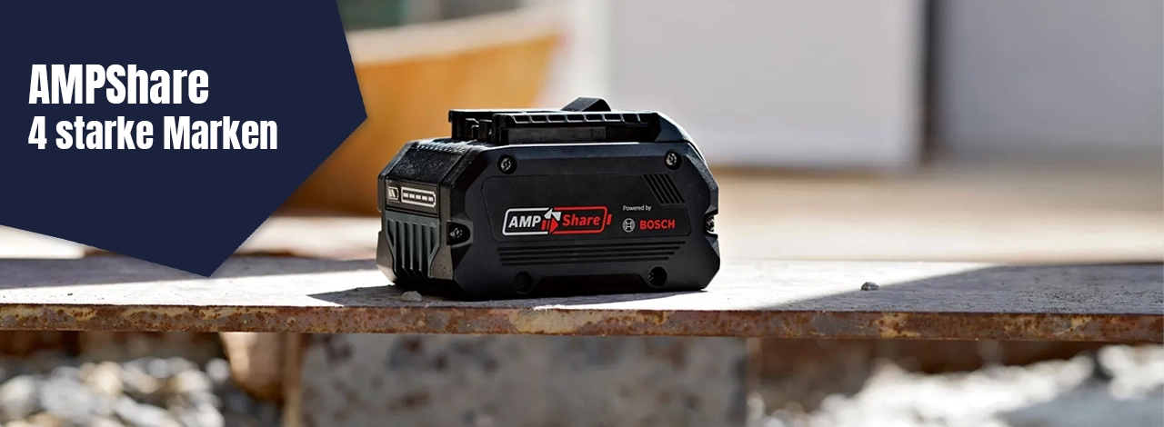 Viele Marken. Viele Maschinen. Ein Akku-System - Das ist AMPShare. Mit dem markenübergreifenden 18V-Akku-System für Profis aus Handwerk und Industrie wechselst du mühelos zwischen verschiedenen Werkzeugen und Herstellern – ganz ohne Kompromisse. Über 80 Millionen verkaufte Akkus und eine dynamisch wachsende Nutzergemeinschaft zeigen: Auf AMPShare kannst du bauen.