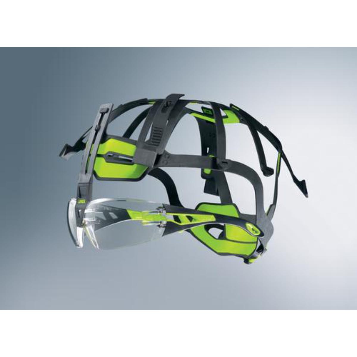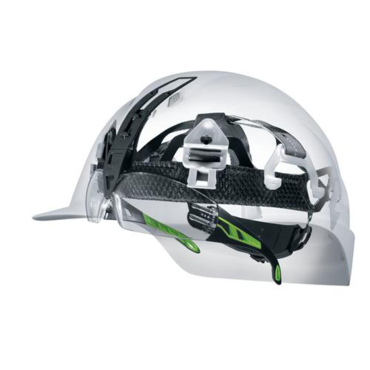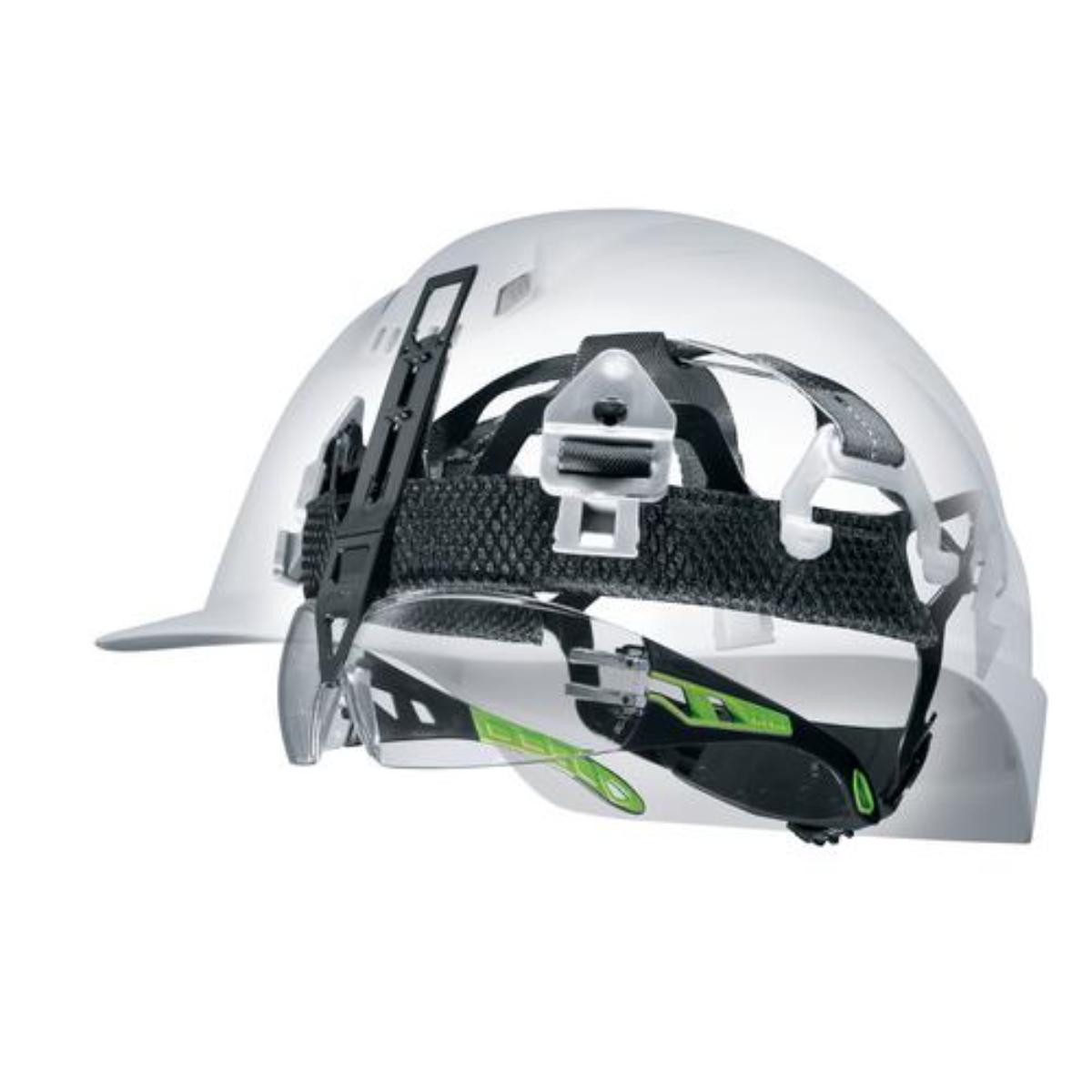 Der uvex pheos Schutzhelm mit dem Einstellbereich von 55 cm bis 61 cm (Kopfumfang) hat einen langen Schirm. Schutzbrillen und Schutzhelme vertragen sich nicht immer gut, dem aber setzt der uvex pheos IES jetzt ein Ende: IES heißt Integrated Eyewear System und bedeutet, dass sich Ihre uvex pheos Arbeitsschutzbrille jetzt direkt mit dem im Helm integrierten Halter verbinden lässt. Damit sitzt sie jederzeit sicher dort, wo sie sitzen soll bei Bedarf auch sicher verstaut in der Parkposition im Helm.